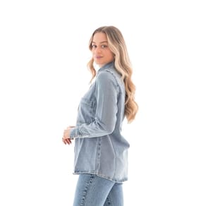 Quem aqui não tem uma camisa jeans para chamar de sua, está na hora de garantir! Além de prática, ela é versátil podendo ser usada somente ela ou abertinha como uma terceira peça! Aproveite e garanta já a sua!