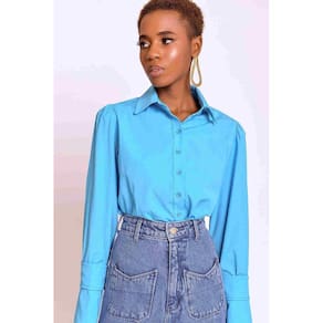 Camisa Manga Longa Princesa, possui mangas longas estilo princesa, fechamento frontal com botões, gola decote em V, punho largo com fenda e botões. A camisa de manga longa feminina é uma peça versátil cheia de possibilidades que compõe diversos looks, perfeita para composições formais, casuais e até mesmo para um look mais básico. Código do Produto: 1426 Marca: Khalli