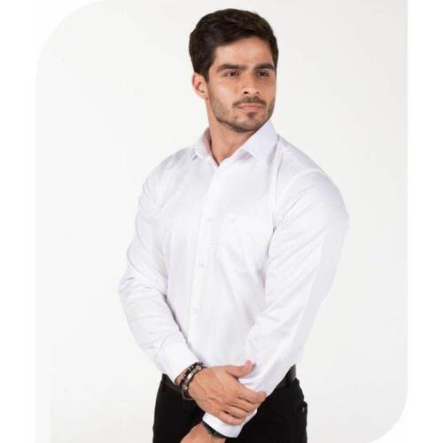 Camisa manga longa modelagem confort fit, mais reta e tradicional.