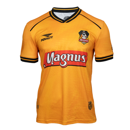 A nova camisa oficial do Magnus Futsal 2025 chega com um visual impactante, inspirado na Arena Sorocaba, palco das maiores conquistas do time. O modelo traz a cor laranja como destaque, com detalhes em preto e amarelo que remetem à estrutura da arena, como as treliças e venezianas presentes no ginásio. A gola em V e os punhos contrastantes completam o design moderno e cheio de identidade.