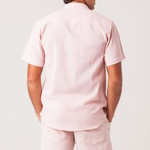 A camisa social masculina slim conta com gola esporte, abotoamento frontal e mangas curtas.