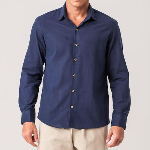 A camisa social masculina slim conta com gola esporte, abotoamento frontal e manga longa.