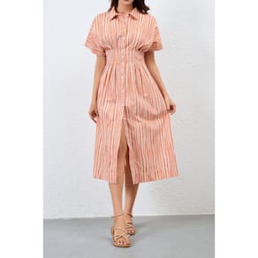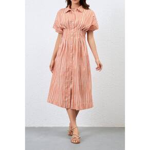 - Combinação: o vestido midi listrado combina com saltos altos, tênis, sapatos de tabuleiro, sandálias e outros ou como uma camisa de botão com conjunto bikibi, regata e calça, relaxado e confortável de usar no dia a dia e dia especial.