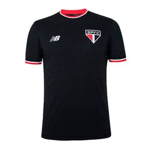 - Detalhamento: Camiseta manga curta, gola careca, logo New Balance na altura do peito ao lado direito, distintivo do SP na altura do peito ao lado esquerdo, caimento padrão, modelo retro;