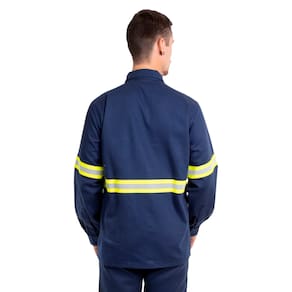 A Camisa NR10 da Fardas Express foi projetada para oferecer máxima segurança e conforto para profissionais que trabalham em ambientes com risco elétrico. Com modelo , fechamento com fecho aderente e mangas longas também com fecho aderente, esta camisa combina praticidade e ajuste perfeito. Equipado com faixa refletiva de 2,5 cm com sitel neon verde nas frentes, costas e mangas, a camisa garante alta visibilidade, essencial para a segurança do trabalhador. Fabricada com o resistente tecido Uniforte Pro, a camisa oferece durabilidade e proteção para enfrentar os desafios de ambientes industriais e de risco.