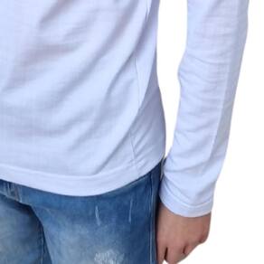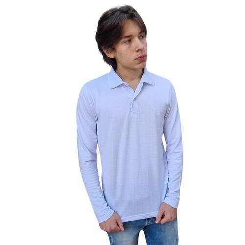 Camisa Polo Masculina Básica Algodão Manga Longa Casual Slim - Branco - G1