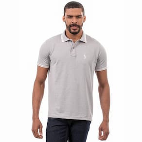 Camisa Polo Masculina Básica Piquet Algodão Confortável - Cinza Claro - GG