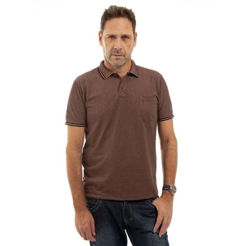 Camisa Polo Masculina Pique Algodão com Bolso Casual - Marrom - M