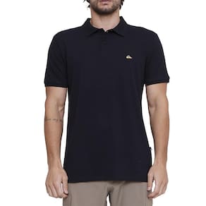 Camisa QuikSilver Polo feita em modelagem regular fit, bordado no peito com 1 cor, tape contrastante, combinando com o bordado, vista 2 botões pretos e etiqueta aplicada na lateral esquerda de quem veste.