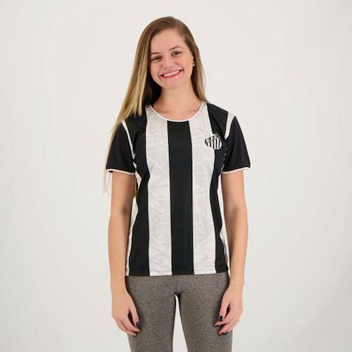 "Um orgulho que nem todos podem ter" Vista toda paixão pelo Santos em todos os momentos com a camisa feminina da linha Poetry, ideal para as fanáticas pelo clube. Feita em poliéster, a peça traz design em preto e branco, com o escudo do time estampado. Informações Técnicas Composição: 100% PoliésterCor predominante: PretaIndicado para: CasualEscudo: EstampadoGênero: FemininoOrigem: NacionalClube: SantosManga: CurtaGola: Careca Dimensões aproximadas (A x L):P: 58 x 41 cmM: 60 x 43 cmG: 62 x 45 cmGG: 64 x 47 cm