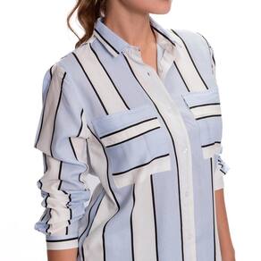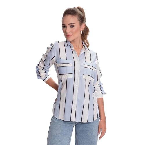 A nossa querida Camisaria Teodoro apresenta sua nova e luxuosa linha de camisas femininas. Conheçam este lindo lançamento "Teresa Teodoro" e se apaixonem! Esse modelo é confeccionado em tecido 100% algodão, possui manga longa e estampada listrada, sua modelagem é soltinha com dois bolsos quadrados grandes frontais com tampa. Arrematada com botões perolados na frente. Punho moderno, bem estreito. Colarinho tipo italiano leve, não incomoda no colo. Veste bem com jeans, calça alfaiataria e short, peça muito versátil que acompanha as tendências da moda.