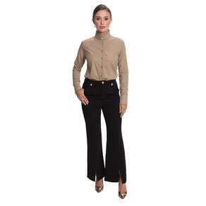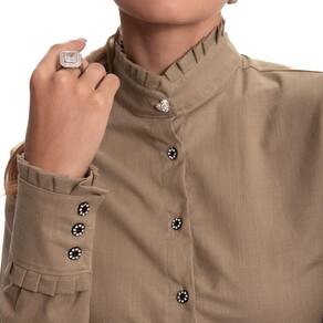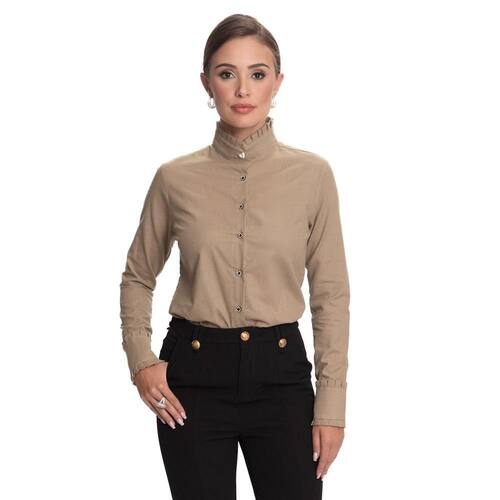 A nossa querida Camisaria Teodoro apresenta sua nova e luxuosa linha de camisas femininas. Conheçam este lindo lançamento "Teresa Teodoro" e se apaixonem! Camisa feminina manga longa lisa em tricoline de algodão de alta qualidade com modelagem acinturada. Manga longa discretamente bufante, colarinho tipo mandarim arrematado por charmoso babado tipo Jabour na gola. Punho largo também com babados Jabour e fechamento por botões de strass. Veste bem com calça para looks mais formais e acompanha também saia para um look mais romântico. Peça muito versátil e chique, é desejo no guarda roupa de toda mulher.