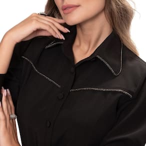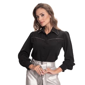 A nossa querida Camisaria Teodoro apresenta sua nova e luxuosa linha de camisas femininas. Conheçam este lindo lançamento "Teresa Teodoro" e se apaixonem! Esse modelo possui manga longa com modelagem acinturada e manga levemente bufante. Fechamento frontal e nos punhos com botões encapados do mesmo tecido da peça. Cordame cravejado com strass em recortes frontais e em todo o contorno da gola. Veste bem com calça para looks mais formais e acompanha também saia para um look mais Romântico. Peça muito clássica e confortável. Fácil de passar, não amarrota muito.