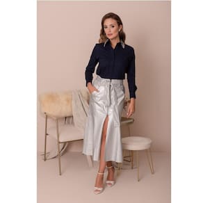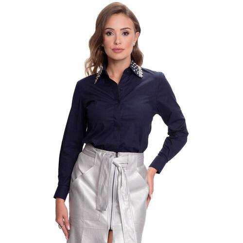 A nossa querida Camisaria Teodoro apresenta sua nova e luxuosa linha de camisas femininas. Conheçam este lindo lançamento "Teresa Teodoro" e se apaixonem! Este modelo é confeccionado em tecido de algodão e elastano de alta qualidade. Modelagem acinturada, manga longa, fechamento frontal com frente invisível, os botões não ficam aparentes, bordado MANUAL de Strass por todo o contorno da gola, belíssimo! Punho bem armado com fechamento parcial deixando a pele a mostra, arrematado com botões grande de flor em pedraria. Veste bem com calça looks mais formais e acompanha também saia para um look mais romântico.