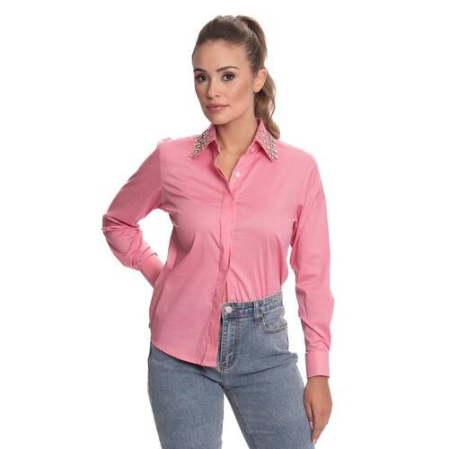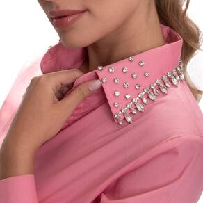 A nossa querida Camisaria Teodoro apresenta sua nova e luxuosa linha de camisas femininas. Conheçam este lindo lançamento "Teresa Teodoro" e se apaixonem! Este modelo é confeccionado em tecido de algodão e elastano de alta qualidade. Modelagem acinturada, manga longa, fechamento frontal com frente invisível, os botões não ficam aparentes, bordado MANUAL de Strass por todo o contorno da gola, belíssimo! Punho bem armado com fechamento parcial deixando a pele a mostra, arrematado com botões grande de flor em pedraria. Veste bem com calça looks mais formais e acompanha também saia para um look mais romântico.