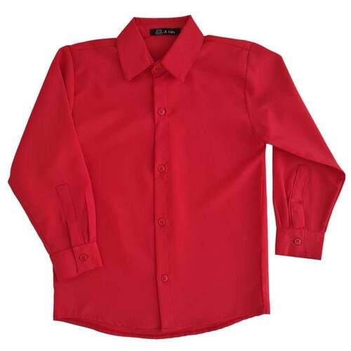 Camisa Social Infantil Botão Manga Longa Vermelha Masculina - Vermelho - 16