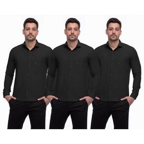 Camisa Social Masculina Manga Longa Botões Lisa Kit 3 - Preto - P