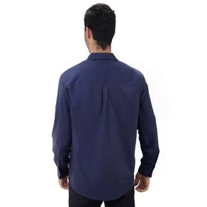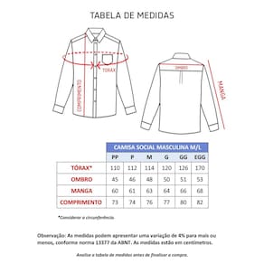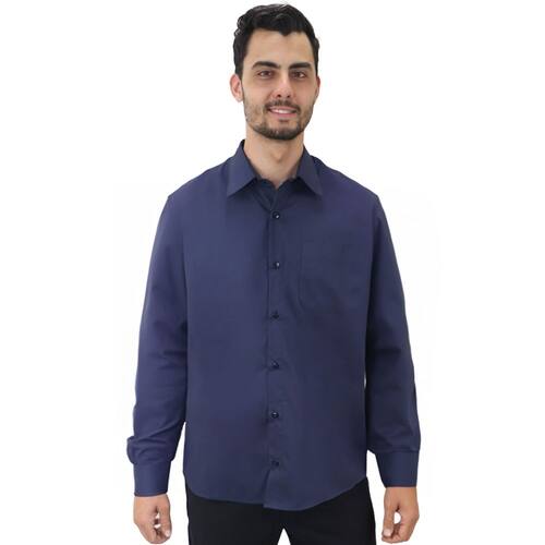 Camisa social manga longa é confeccionada em tecido misto 67% poliéster e 33% algodão.