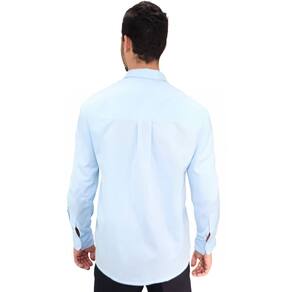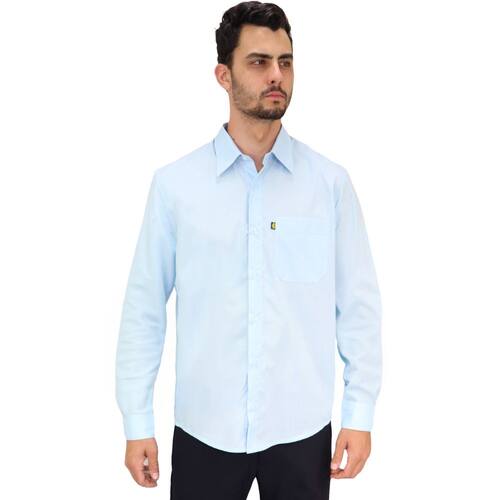Camisa social manga longa é confeccionada em tecido misto 67% poliéster e 33% algodão.