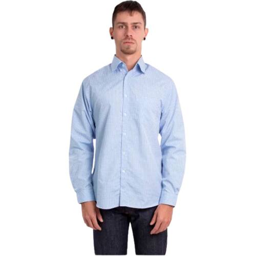 Camisa Social Xadrez Mangas Longas Azul Claro - P - Azul Claro