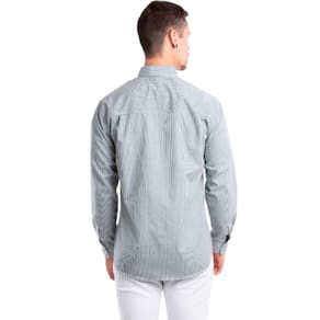 Camisa Social Xadrez Mangas Longas Verde Listrado - Verde - EG