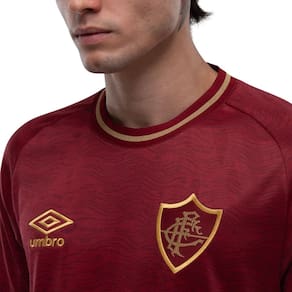 A Camisa Oficial do Fluminense da terceira temporada 2025 homenageia o torcedor tricolor e o Rio de Janeiro. Uma armadura em grená e dourado que simboliza a paixão, o orgulho e a história de quem carrega o clube no coração. Detalhes do produto: Modelagem fit para ajuste perfeito ao corpo; Frente em jacquard com textura diferenciada; Recortes laterais que proporcionam conforto e mobilidade.