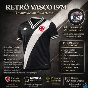 Relembre um dos momentos mais marcantes da história do Vasco da Gama com a Camisa Kombat Home Vasco 74, um manto que homenageia a conquista do Campeonato Brasileiro de 1974.