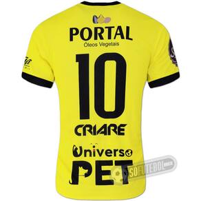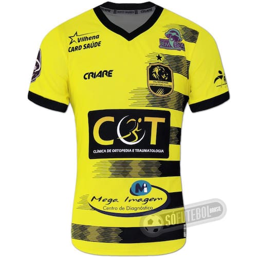Composição: 100% Poliéster Gola: Em V Fabricante: Criare Patrocínio: COT - Clínica de Ortopedia e Traumatologia, Mega Imagem - Centro de Diagnóstico, Vilhena Card Saúde, Espaço Bem Estar, Portal Óleos Vegetais, Universo PET, Atmus Academia e Super Pão - Panificadora e Confeitaria Escudo: Sublimado Manga: Curta Origem: Brasil Conteúdo da Embalagem: 01 Camisa