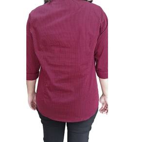 Camisa Xadrez Feminina de Manga 3/4 em Algodão 100%.