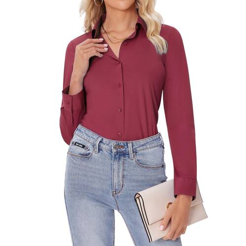 - Versátil e fácil de combinar: a camisa de manga comprida para mulheres combina facilmente com calças, blazers, jeans, shorts ou leggings. Ideal para o escritório, reuniões ou uso diário, durante todo o ano