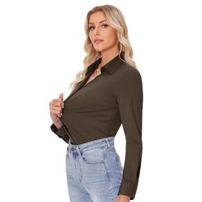 Camisas de botão Siliteelon para mulheres Coffee Brown 3XL