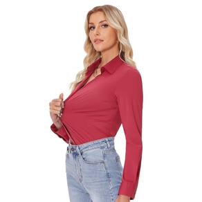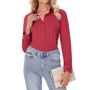 Camisas de botão Siliteelon para mulheres vermelhas Slim Fit XXL