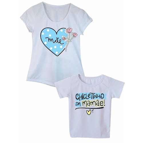 Camiseta Adulta e Infantil Chicletinho da Mamãe Kit Tal Mãe Tal Filho - Branco - G