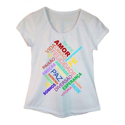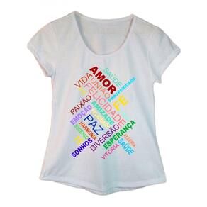 Camiseta Adulta Feminina Estampa Palavras.