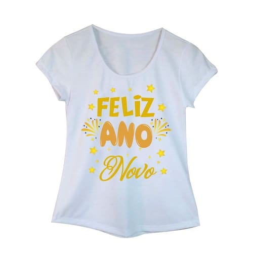 Camiseta Adulta Feminina Feliz Ano Novo.