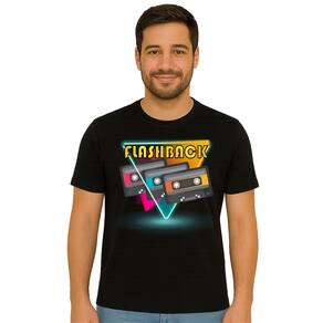 Camiseta Adulta Manga Curta Temática Flash Back Fitas - Preto - P