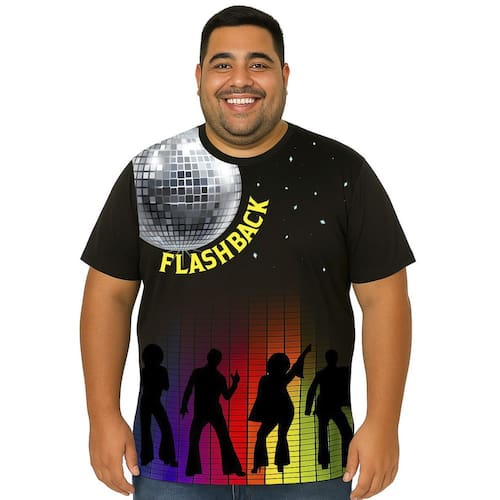 Camiseta Adulta Temática Flash Back Retrô Tamanho Plus Size.