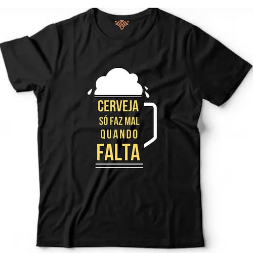 Camiseta algodão bebidas cerveja -Cerveja faz mal se faltar - Preto - XG
