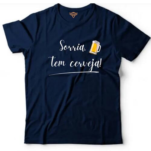 Camiseta algodão bebidas cerveja -Sorria tem cerveja - Azul Marinho - G
