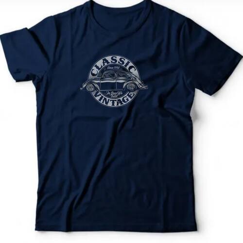 Camiseta algodão carros - Fusca: Classic Vintage - Azul Marinho - G