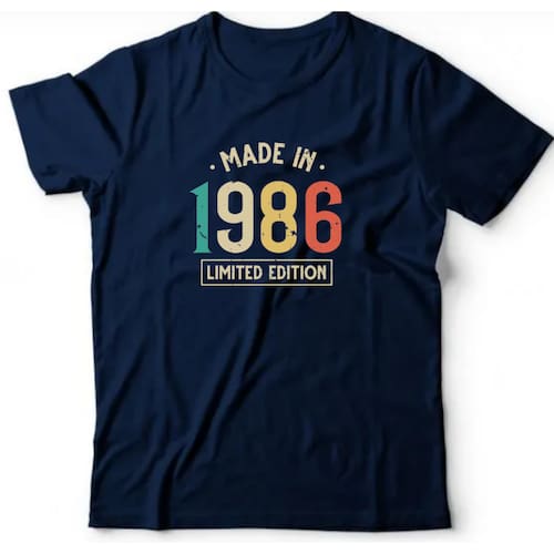 Camiseta algodão cronológicas- Feito em 1986 - Azul Marinho - G