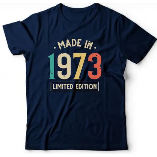 Camiseta algodão cronológicas- Made in 1973 - Azul Marinho - M