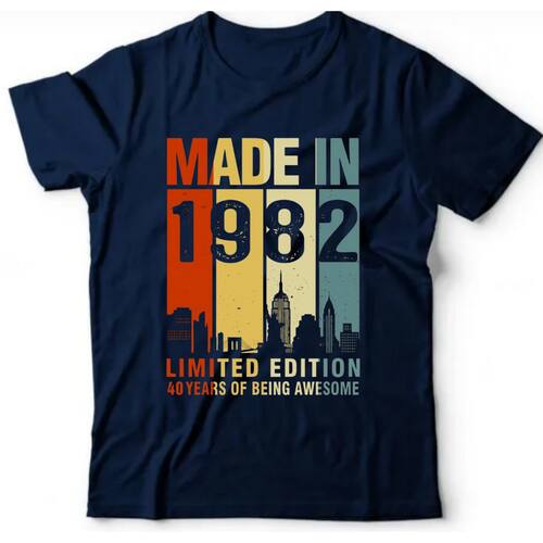 Camiseta algodão cronológicas- Made in 1982 - Azul Marinho - GG