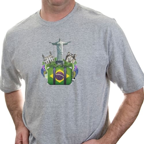 ***Para estampas em camiseta escura, o processo de produção exige um tratamento no tecido com um composto chamado primer. Esse composto pode eventualmente deixar uma leve marca no entorno da estampa que desaparece num curto espaço de tempo ou na primeira lavagem. ***