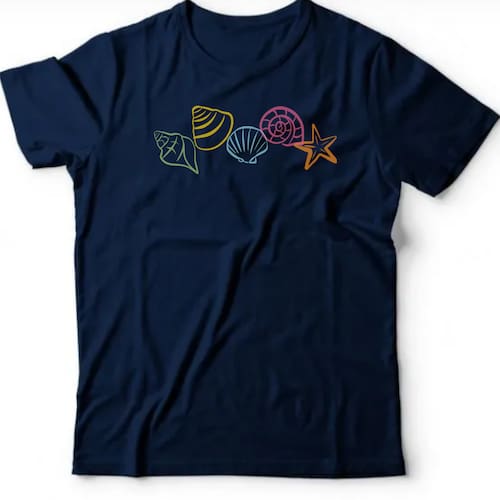 Camiseta algodão pets & natureza - Conchas - Azul Marinho - P