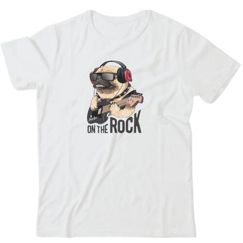 Camiseta algodão rock - Pug on the rock - Branco - P