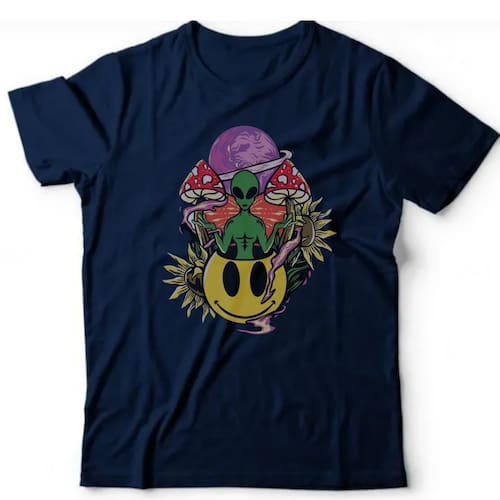 Camiseta algodão ufologia - Alien mágico - Azul Marinho - XG