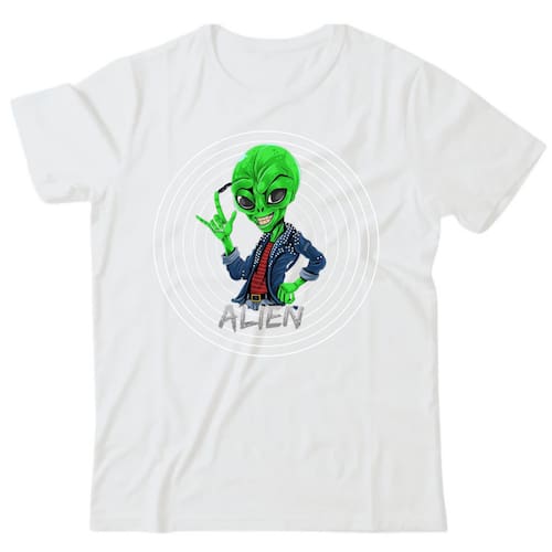 Camiseta algodão ufologia - Rock Alien - Branco - XG