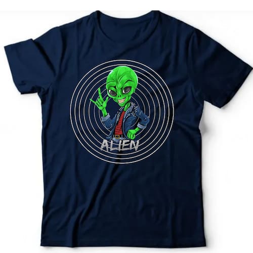 Camiseta algodão ufologia - Rock Alien - Azul Marinho - GG