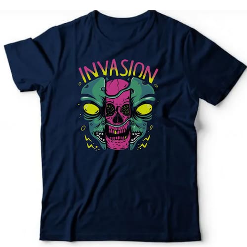 Camiseta algodão ufologia - Skull Alien - Azul Marinho - P